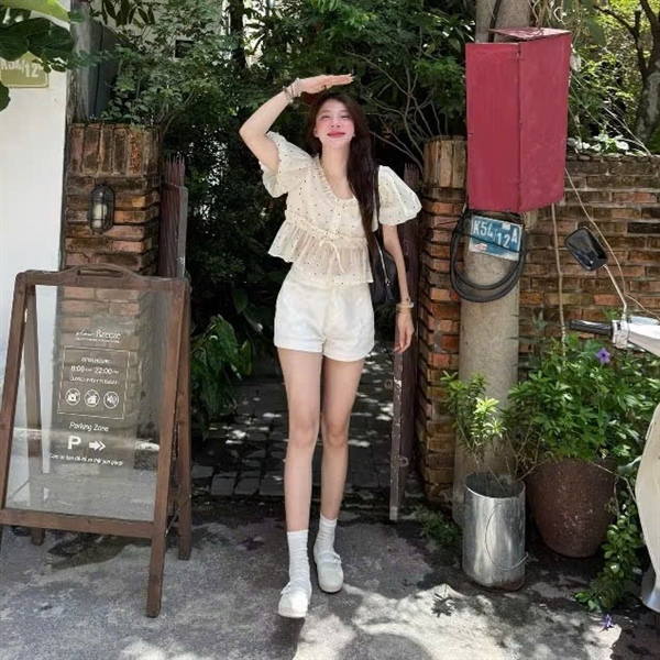 ÁO KIỂU CHẤM BI RÚT EO 778